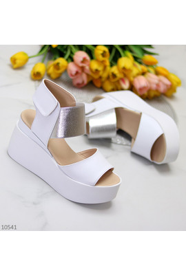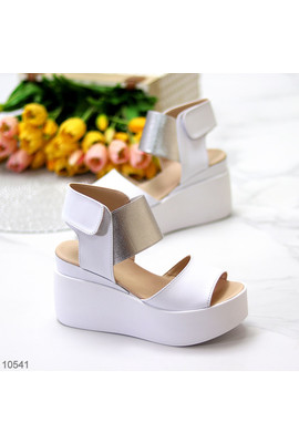 Код 10541 ДОСТУПНІ ПІД ВІДШИВ Босоніжки на липучці "Manila" Матеріал - Натуральна шкіра Колір - Білий/Срібло Платформа - 9,5см/5см Виробник - Україна Маломірять 36-23 37-23,5 38-24 39-24,5 40-25