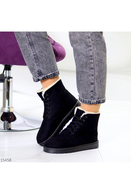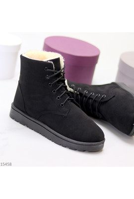 Код 15458 Розміри 36-41 Уггі на шнурках "Mizy" Матеріал - Екозамша Всередині - Екохутро Сезон - Зима Колір - Чорний Висота від п'ятки - 11,5см Підошва - 2,5см/1,5см Заміри прописані за результатами примірки на стопу На середню стопу Розмір у розмір 36-...