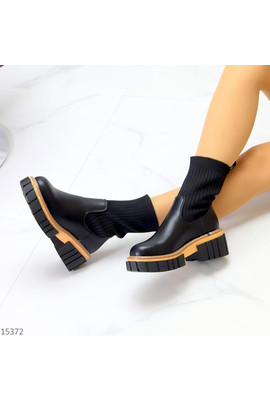 Код 15372 Розміри 36-41 Черевики Diana Матеріал - Екошкіра/Текстиль-в’язка Всередині - Ворсистий фліс Колір - Чорний Висота від п’ятки - 19см Підошва - 6см/3,5см На середню стопу Розмір у розмір 36-23,5 37-24 38-24,5 39-25,5 40-26 41-26,5