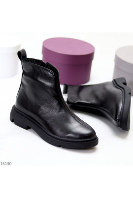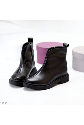 Код 15130 Розміри 37-40 Черевики "Fuji" Матеріал – НАТУР. ШКІРА Всередині - Ворсистий фліс Сезон - Демі Колір - Чорний Висота від п'ятки - 13 см Підошва - 3,5см/2см На середню стопу Виробник - Україна Розмір у розмір 37-24 38-24,5 39-25,5 40-26