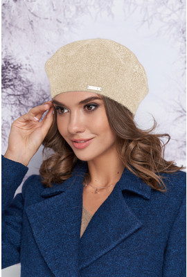 Берет с люрексовой нитью на флисовом подкладе Наиля 4908 кремовый