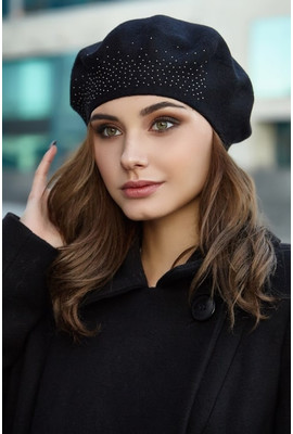 Главная страница Женские шапки Осень-Зима Женский берет украшенный стразами "София" - 5119-1 серый