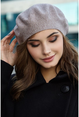 Женский берет украшенный стразами "София" - 5119-1 серый - Интернет-магазин - ELENKA