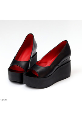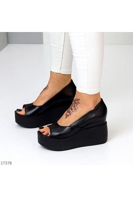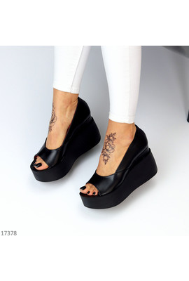 Изображения Чорні відкриті туфлі на танкетці Holi 17378 sh - Интернет-магазин - ELENKA