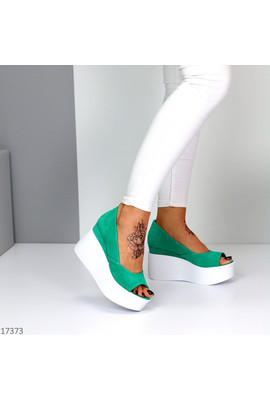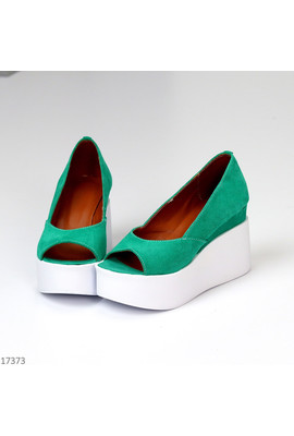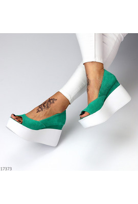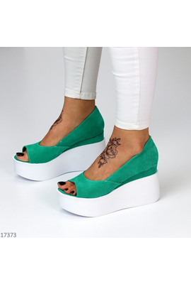 Код 17373 ДОСТУПНІ ПІД ВІДШИВ Розміри 36-40 Відкриті туфлі "Holi" Матеріал - НАТУР. ЗАМША Всередині - НАТУР.ШКІР.ПІДКЛАД Колір - Смарагдовий Танкетка - 9см/5см Виробник - Україна На середню стопу Розмір у розмір 36-23,5 37-24 38-24,5 39-25,5 40-26. В н...