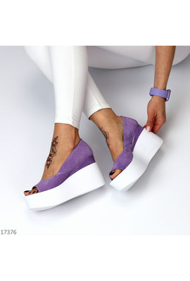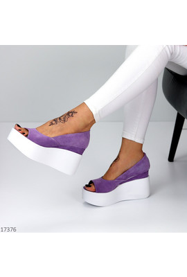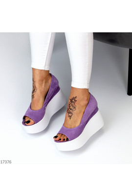 Код 17376 ДОСТУПНІ ПІД ВІДШИВ Розміри 36-40 Відкриті туфлі "Holi" Матеріал - НАТУР. ЗАМША Всередині - НАТУР.ШКІР.ПІДКЛАД Колір - Фіалковий Танкетка - 9см/5см Виробник - Україна На середню стопу Розмір у розмір 36-23,5 37-24 38-24,5 39-25,5 40-26. В наш...