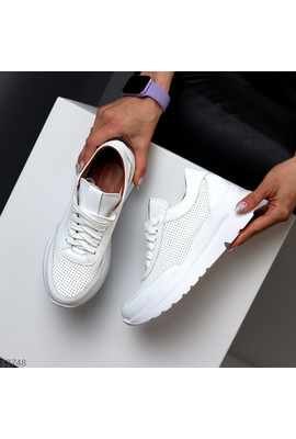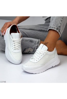 Білі шкіряні кросівки з перфорацією Aaron 13748 sh