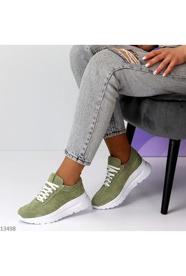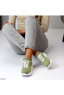 Главная страница Демисезонная женская обувь Кросівки з натуральної замші Aaron оливкові 13498 sh