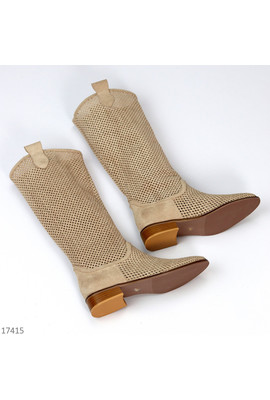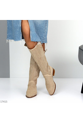 Код 17415 Розміри 36-40 Чоботи літні "Sunflower" Матеріал - Екозамша Устілка - Екошкіра Колір - Беж Висота від п’ятки - 33см Підошва - 3см/1см Виробник - Туреччина На середню та більш вузьку стопу Маломірять 36-23 37-23,5 38-24 39-25 40-25,5.