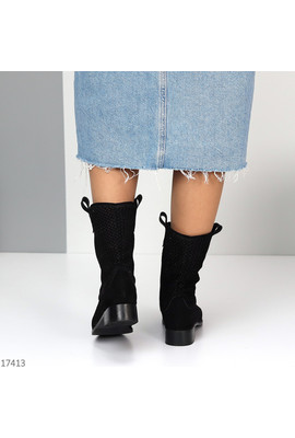 Код 17413 Розміри 36-40 Чоботи літні "Sunflower" Матеріал - Екозамша Устілка - Екошкіра Колір - Чорний Висота від п’ятки - 19,5см Підошва - 3см/1см Виробник - Туреччина На середню та більш вузьку стопу Маломірять 36-23 37-23,5 38-24 39-25 40-25,5.