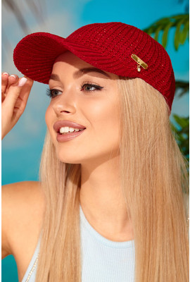 Главная страница Женские летние шляпы и кепки Вязанная бейсболка кепка Lurex 4952 красный