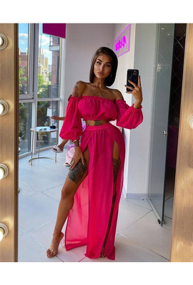 Наличие Под заказ Материал Шифон Длина Длинное Тип Костюм Размер 42-44-46 (S-M) Цвет Малиновый -