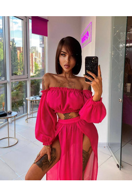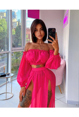 Наш яскравий шифоновий костюм нікого не залишає без компліментів. Легкий та повітряний костюм з об'ємними рукавами підійде як для плжа, так і для фотосесій, створить ніжний і водночас сексуальний образ.
