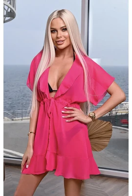 Короткая пляжная туника малинового цвета 206-027