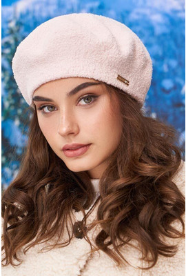 Мягкий теплый беретик на флисе Оджен светлая пудра 4978