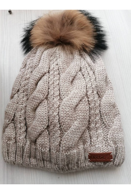 Шапка зимняя, удлиненная, внутри полностью на флисе. Отделка вязка косами, натуральный енот.