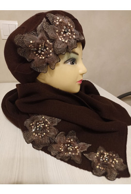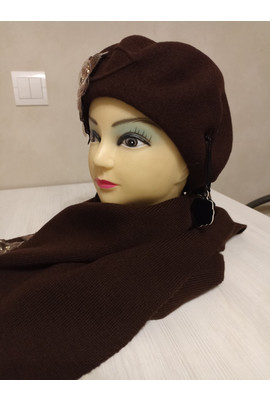 Отзывы Элегантный польский шерстяной комплект Элинор (берет+шарф) 857 шоколадный - Интернет-магазин - ELENKA