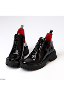 Код 16686 ДОСТУПНІ ПІД ВІДШИВ Розміри 36-40 Туфлі на шнурках "Lagoon" Матеріал - НАТУР. ШКІРА ГЛЯНЕЦЬ Всередині - НАТУР. ШКІР. ПІДКЛАД Сезон - Демі Колір - Чорний/Червоний Висота від п'ятки - 10см Підошва - 4,5см/3см Виробник - Україна На середню стопу...