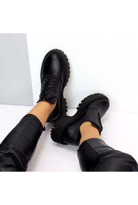 Чорні шкіряні туфлі на шнурках Lagoon 16687 sh