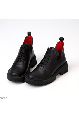 Код 16687 ДОСТУПНІ ПІД ВІДШИВ Розміри 36-40 Туфлі на шнурках "Lagoon" Матеріал - НАТУР. ШКІРА Всередині - НАТУР. ШКІР. ПІДКЛАД Сезон - Демі Колір - Чорний/Червоний Висота від п'ятки - 10см Підошва - 4,5см/3см Виробник - Україна На середню стопу Розмір ...