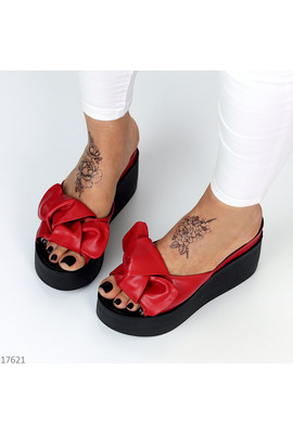 Код 17621 ДОСТУПНІ ПІД ВІДШИВ Розміри 36-40 Шльопанці "Fanni" Матеріал - НАТУР. ШКІРА Устілка - НАТУР. ШКІРА Колір - Червоний Платформа - 9,5см/5см Заміри прописані за результатами примірки на стопу Виробник - Україна На середню стопу Маломірять 36-23 ...