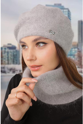 Главная страница Женские шапки Осень-Зима Тёплый зимний комплект Эстель, берет и баф 4977-77 светло-серый