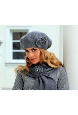 Берет женский (MILENA): Двойной берет гладкой вязки, украшен цветком из основной пряжи с бусинами. Страна производитель: Польша Фирма производитель: KAMEA Состав: 90% шерсть, 10% полиамид Размер: 56-59