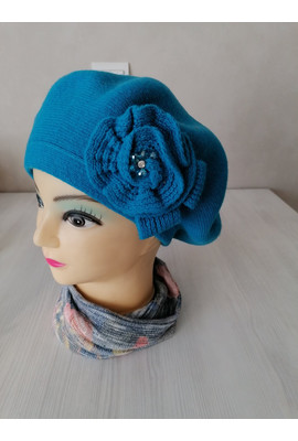 Берет женский (MILENA): Двойной берет гладкой вязки, украшен цветком из основной пряжи с бусинами. Страна производитель: Польша Фирма производитель: KAMEA Состав: 90% шерсть, 10% полиамид Размер: 56-59