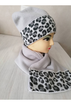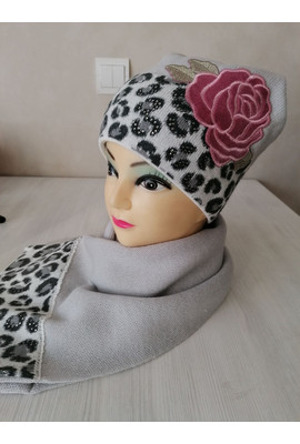 Комплект "Джоана" (шапка и шарф) светло-серый с розовой розой