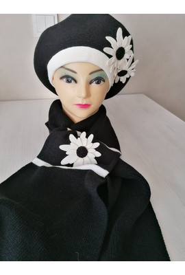 Женский комплект (берет и шарф) Маргарита чёрно-белый