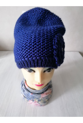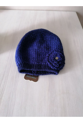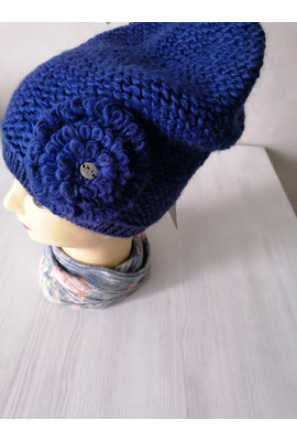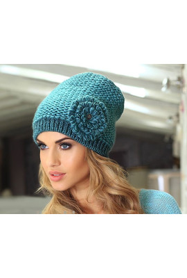 • Шапка женская (RITA) Шапка крупной вязки с внутренним отворотом из трикотажного полотна, украшена цветком из основной пряжи и шильдой Kamea.