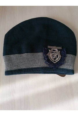 • Тонкая шапка, резинка из пряжи с люрексовой нитью. Украшена фирменным шевроном с буквой «К», бантом и кружевом.