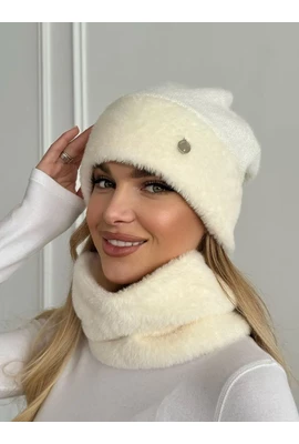 Главная страница Женские шапки Осень-Зима Комплект з альпаки "Вероніка" 001 колір молочний