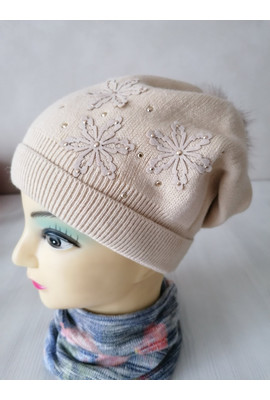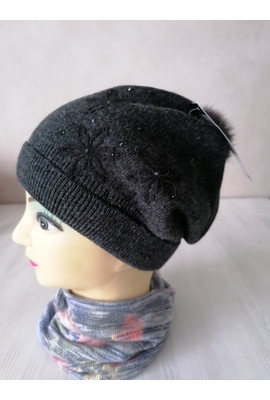 Шапка с маленьким помпоном "Снежинка" 2582 цвет графит