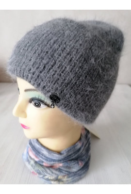 Изображения Зимняя женская шапка из ангоры Мискантус цвет маренго 43802 - Интернет-магазин - ELENKA