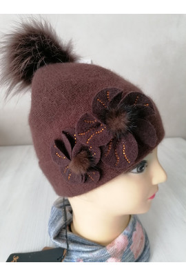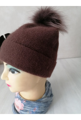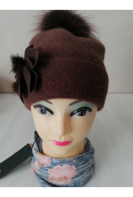 Отзывы Кашемировая шапка с помпоном 1722A коричневая - Интернет-магазин - ELENKA