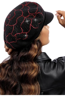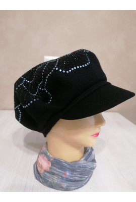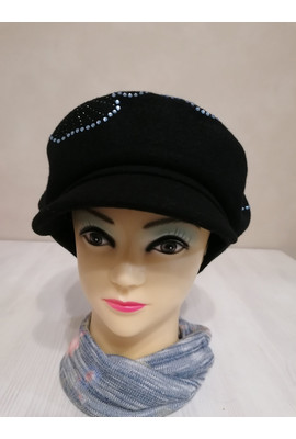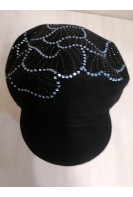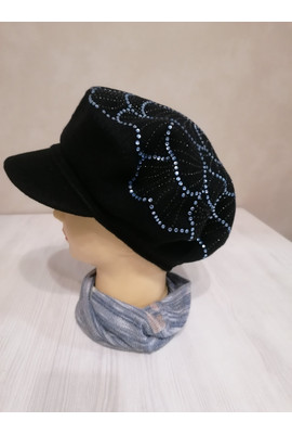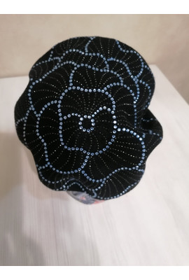 Женская кепка с цветком из страз "Ленира" (Lenira) - 018 чёрный с голубыми стразами