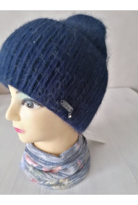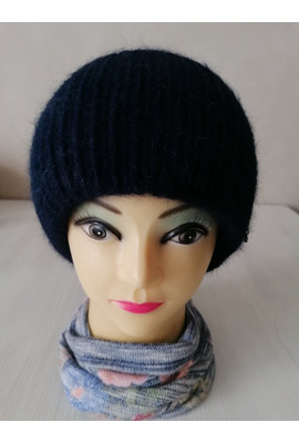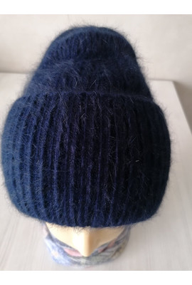 Женская вязаная шапка из ангоры Прато 46459 тёмно-синий