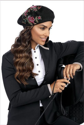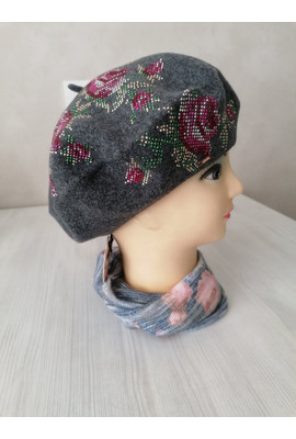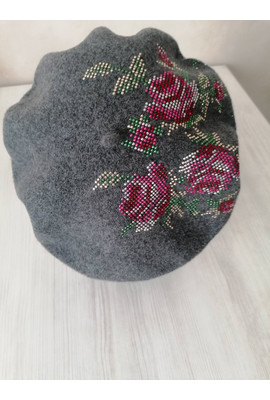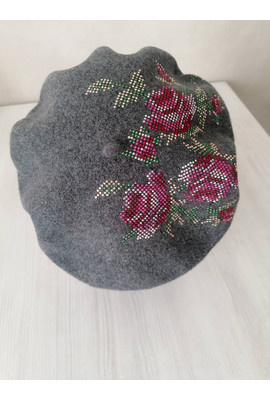 • Модный женский берет из шерсти. Украшен аппликацией в виде веточек розы, украшенной люрексной нитью и нежными стразами. Дополняет композицию фирменная шильда Willi.