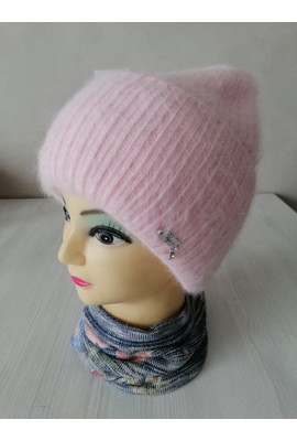Женская вязаная шапка из ангоры Прато 46459 нежно-розовый