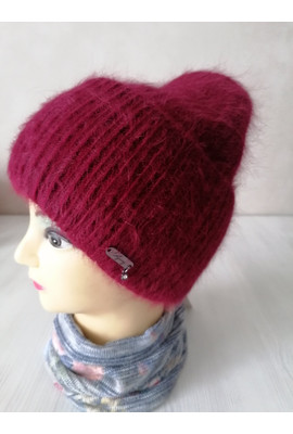 Женская вязаная шапка из ангоры Прато 46459 бордо