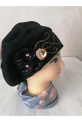 Модный женский берет из шерсти. Украшен аппликацией в виде веточек розы, украшенной люрексной нитью и нежными стразами. Дополняет композицию фирменная шильда Willi. Страна производитель: Польша Фирма производитель: WILLI Цвет: 844 графит меланж