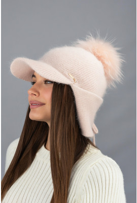 Отзывы Женская вязаная ушанка с козырьком и бубоном "Альба" 7235-1 светлая пудра - Интернет-магазин - ELENKA