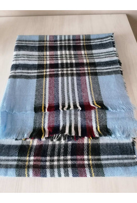 Тёплый шарф в клетку Линель 2025 голубой - Интернет-магазин - ELENKA