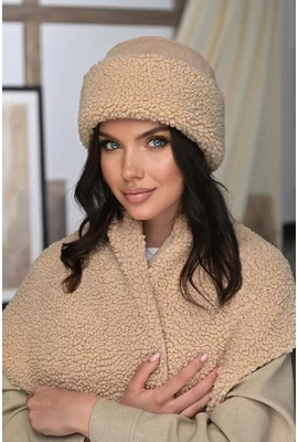 Ця стильна шапка виготовлена з м'якого екохутра Тедді, що забезпечує затишок і тепло. Внутрішня частина шапки, включно з відворотом, облицьована таким самим пухнастим матеріалом, що надає додаткового комфорту. Верхівка шапки виготовлена з екозамші, що надає їй елегантного вигляду. Цей аксесуар є чудовим вибором для осінньо-зимового сезону, поєднуючи стиль і функціональність.