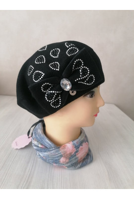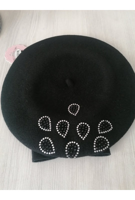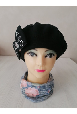 Изображения Польский шерстяной берет с бантом Дебора (Debora) 018 чёрный - Интернет-магазин - ELENKA