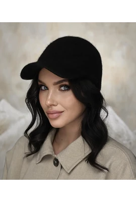 В'язана кепка з ангори "Августа" 785-002 колір чорний - Интернет-магазин - ELENKA