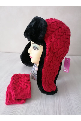 Главная страница Женские шапки Осень-Зима КОМПЛЕКТ ШАПКА-УШАНКА+МИТЕНКИ - 181 красный