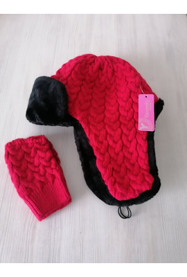 КОМПЛЕКТ ШАПКА-УШАНКА+МИТЕНКИ - 181 красный