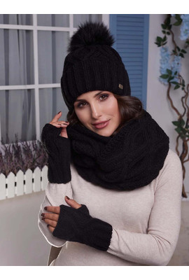 Изображения Чёрная женская шапка Гламур с натуральным помпоном - Интернет-магазин - ELENKA